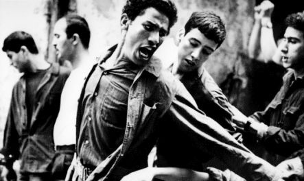 Gillo Pontecorvo, auténtico paradigma sesentero de cineasta políticamente comprometido, realizó únicamente cinco películas (todas ellas de un acentuado carácter antifascista) en sus treinta y cinco años de carrera, destacando entre todas esta perturbadora e impactante reconstrucción de las luchas que el pueblo argelino y el Frente de Liberación Nacional (FLN) sostuvieron entre 1954 y 1960 contra el poder colonial francés para conseguir su independencia. Rodada íntegramente en la capital del país norteafricano con actores no profesionales, mostraba la insurrección de la ‘casbah’ contra las fuerzas de ocupación del general De Gaulle mediante un fiel y apropiado tono realista, cercano al documental, en el que se ponían de manifiesto los métodos represivos con espeluznante violencia y rigurosidad dramática. Esas impactantes imágenes contribuyeron a que este conmovedor himno en favor de la libertad permaneciera prohibido durante muchos años en numerosos países (censurada casi en todos) hasta que el paso del tiempo ha hecho de ella una obra cumbre de la historia del cine político.